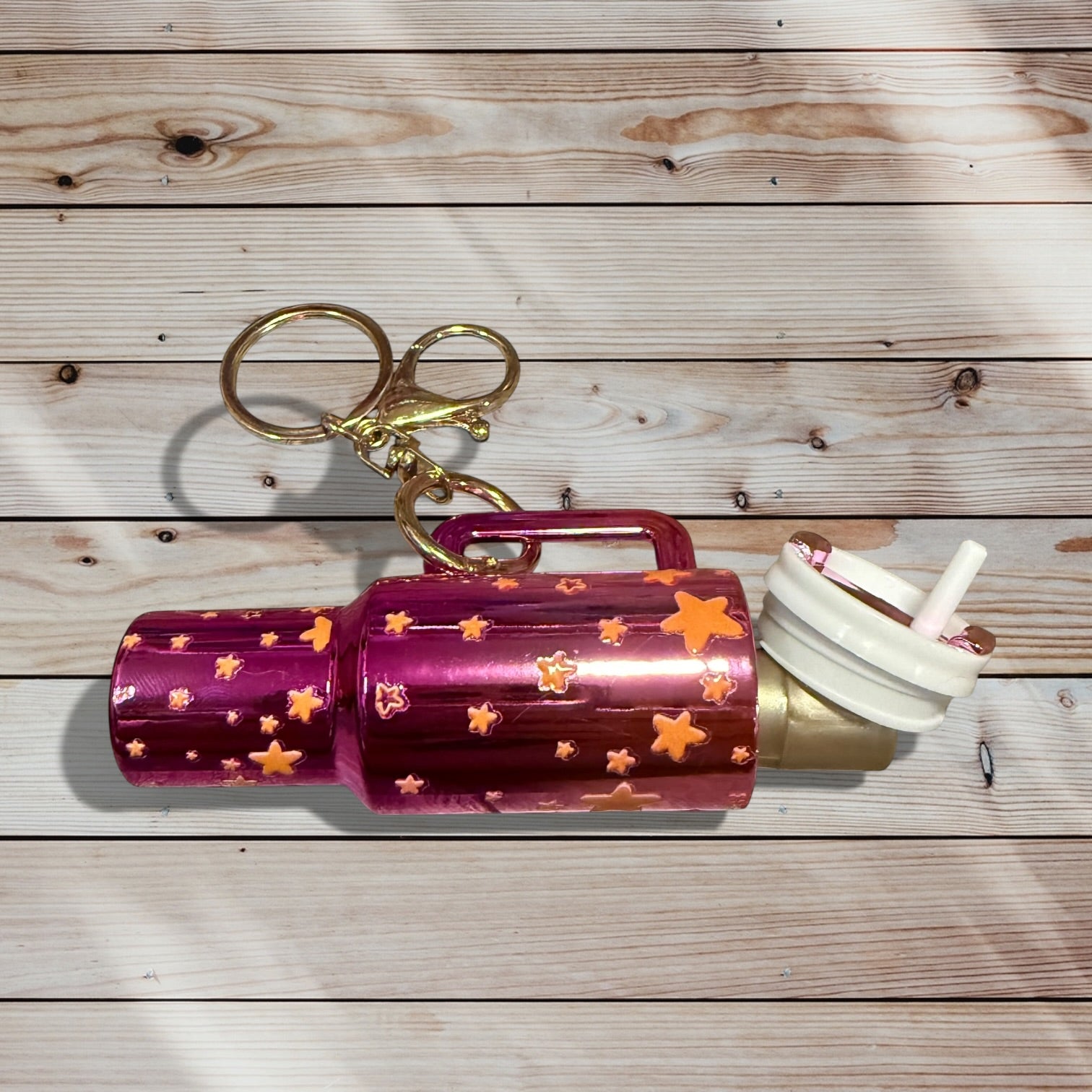 This mini tumbler keychain is both cute and functional. Designed to hold small items like lip balm, folded cash, or tiny essentials, it’s a fun and practical accessory for keys, bags, or backpacks.