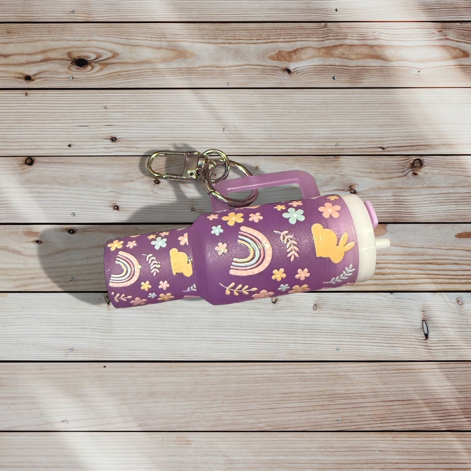 Mini Tumbler Keychain – Bunny and Rainbow